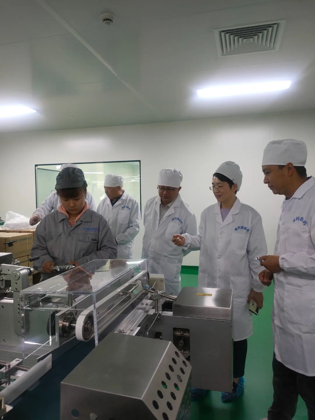 贵州省工业和信息化厅轻工业处领导一行莅临我司指导调研发表时间:2024-04-26 15:16 ![]() 2024年4月26日上午,贵州省工业和信息化厅轻工业处处长胡伊丽、二级调研员姚小虎、一级主任科员黄兴炜和健康医药产业发展专班的同志来威利德制药调研指导,公司党支部书记罗贵强、生产中心相关领导陪同调研。 ![]() ![]() 胡处长一行走进生产车间现场实地查看和详细了解公司生产、市场营销、技术研发、人员招聘、存在困难等情况,她要求企业要注重产品质量和研发,鼓励企业要抢抓机遇,把企业做大做强。针对公司存在的问题和困难,胡处长表示将持续关注公司的发展,呼吁相关职能部门在产学研合作、创新发展等方面给公司提供政策、信息方面的帮助,让企业有序健康发展。 ![]() 胡处长一行边走边看,不时与公司相关负责人沟通交流,详细了解企业近期生产经营情况,他鼓励企业要抢抓发展机遇,不断加大技术创新和研发力度,进一步提高产品质量,提升苗药品质,助力健康医药产业高质量发展,为地方经济发展做贡献。